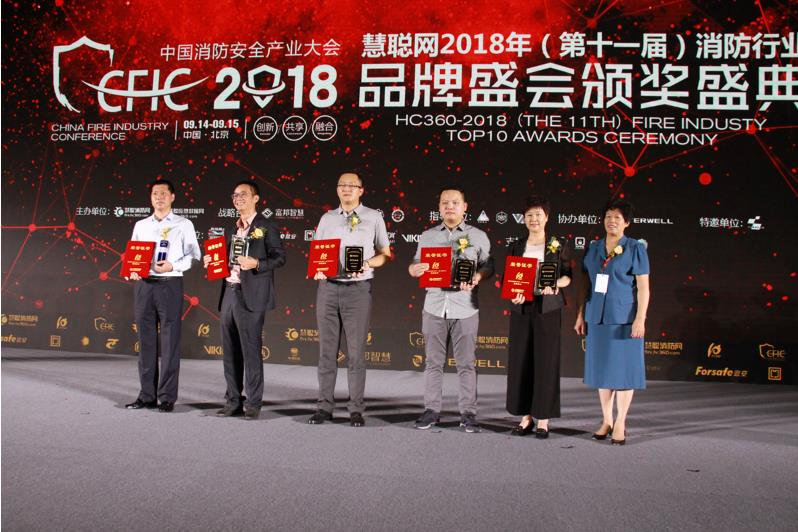 2018年9月14日,北京航天常兴董事长杨迺文先生、总经理王德坤女士参加在北京九华山庄举办的“2018年度慧聪网(第十一届)消防行业品牌盛会颁奖盛典。航天常兴一举荣获电气火灾监控产品、智慧消防产品领军品牌两个殊荣!