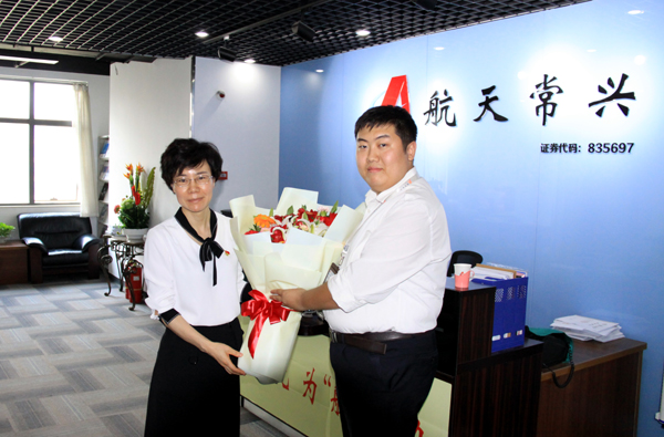 在2019年5月30日“全国科技工作者日”之际,北京航天常兴科技发展股份有限公司科技一线工作者赵海龙先生与总经理王德坤女士等迎来了大兴区科学技术协会赵连英主席、大兴区科协副主席李建国等一行人员对科技工作者的节日慰问及工作指导。