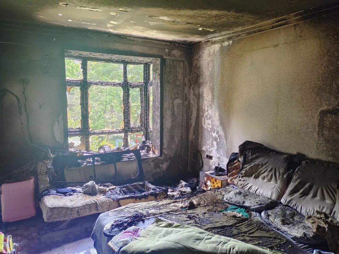 5月13日,湖北武汉黄陂区某小区,一居民家中卧室起火,损失惨重。