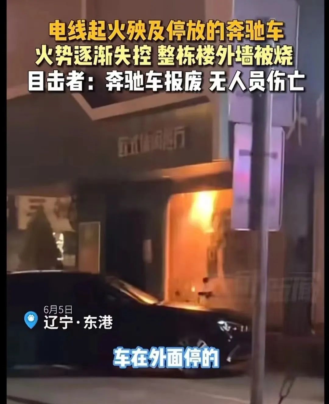 从视频信息看,门帘牌區上 电线短路 ,火星四溅,并且外墙材料被引燃。