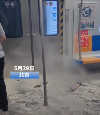 2023年5月底,北京地铁7号线上,一名乘客挎包内的充电宝突然发生爆燃。