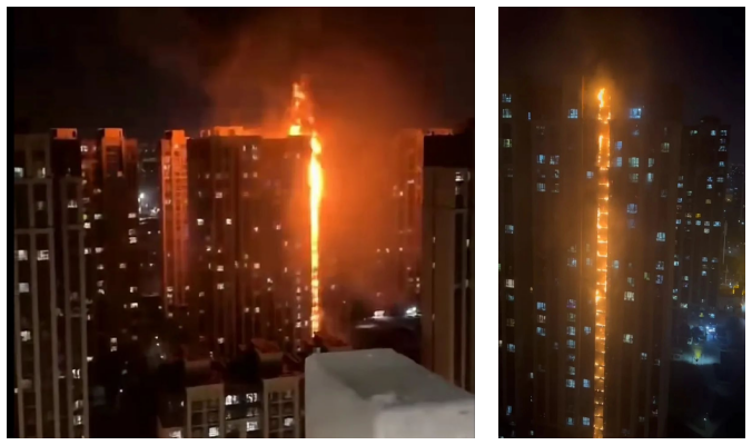 2 月 4 日晚上 10 点左右,河北省石家庄市桥西区一小区楼体南侧外墙局部起火,火势迅速自底层蔓延至顶层,并不断冒出滚滚浓烟。