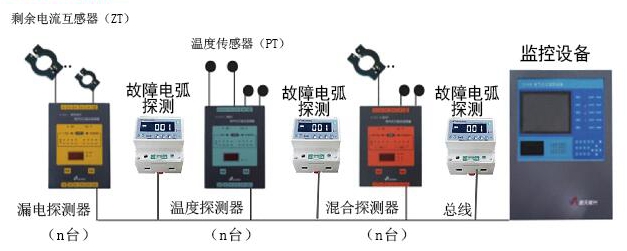 此产品除能独立式工作外还能与本公司生产的DJ800型电气火灾监控设备构成系统工作,也可以通过本公司生产的智能数据传输单元(iDTU)连接云服务大数据平台,实现无线数据监控、传输。