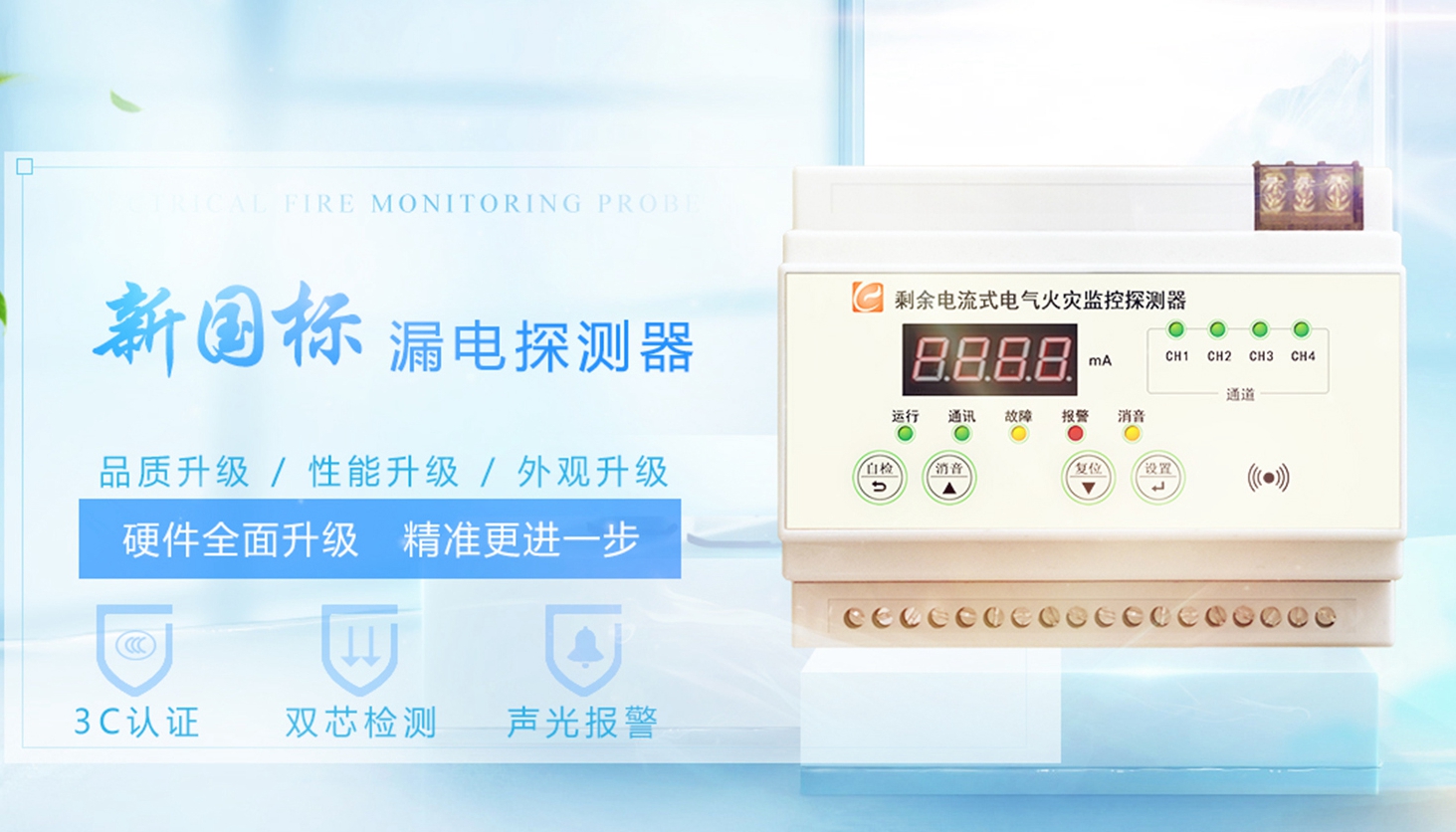 新一代智能型电气火灾监控探测器。可同时监测1路剩余电流1路温度,可独立显示独立工作,也可同时连接电气火灾监控设备组成系统工作。